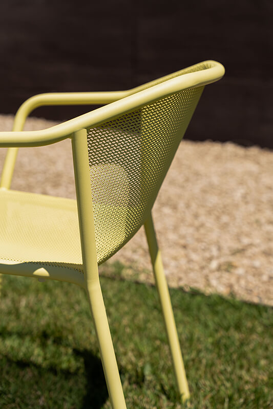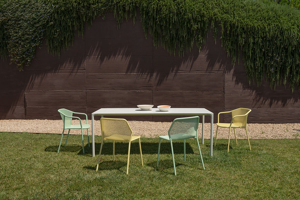 Um das Produkt lange in gutem Zustand zu erhalten, raten wir, es im Winter in geschlossenen, trockenen Räumen aufzubewahren, damit Kondenswasserbildung vermieden wird. Falls die Produkte in Meeresnähe aufbewahrt werden, empfehlen wir, vor Beginn des Winters die Oberflächen aus Metall alle drei Monate mit Wasser oder Reinigungsmittel und einem weichen Tuch zu säubern und mit Vaselinöl oder Autowachs zu schützen. Mit reichlich Wasser abspülen. Die Verwendung von scheuernden Reinigungsmitteln und Bürsten ist zu vermeiden. An lackierten Oberflächen empfiehlt sich regelmäßiges Wachsen des Rahmens mit hochwertigem Autoflüssigwachs oder einem im Handel erhältlichen Schutzprodukt, um zur Beibehaltung bzw. Wiederherstellung des Oberflächenglanzes der Lackierung beizutragen. Schutzprodukte sind im Eisenwarenhandel oder ähnlichen Geschäften erhältlich. Vorsicht am Meer: Bei der Verwendung in mariner Umgebung kann sich Salz in „Spalten“ am Produkt ansammeln und von dort aus rasch die Lackierung angreifen. In Schwimmbadumgebung kann sich hingegen Chlor auf der Lackschicht ansammeln und diese beschädigen. In beiden Umgebungen können wiederholte Kondensations- und Verdunstungsvorgänge zur Ansammlung dieser korrosiven und aggressiven Substanzen vor allem in Spalten am Produkt führen. Die regelmäßige Reinigung mit milder, biologisch abbaubarer Flüssigseife und Wasser sorgt dafür, dass diese konzentrierten Ablagerungen entfernt und die Oberflächenbeschichtung des Möbelstücks entsprechend obigen Anweisungen geschützt wird. Instandhaltungsintervall: - Aggressive Umgebung (Meer, Industriegebiete, Schwimmbäder): alle 3 Monate; - Durchschnittliche Umgebung (städtischer Raum): alle 6 Monate; - Belastungsarme Umgebung (ländliche Gebiete): alle 12 Monate. Bei Tischen empfiehlt es sich, diese nicht mit direkt aneinander anliegenden Tischplatten wegzustellen und sie an trockenen, gut belüfteten Orten einzulagern, um die Entstehung von Kondensat zu vermeiden.