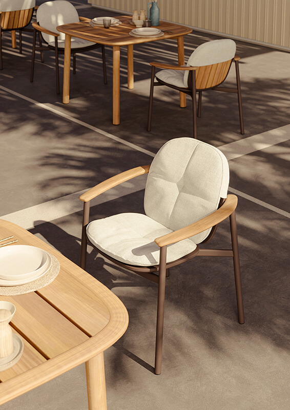 The Twins collection consists of two twin versions: one entirely made of teak, the other characterized by an interesting material mix between teak and aluminium, a perfect syntesis between the designer’s experience and EMU’s know-how. A collection made up of seats, tables and sofas, which overcomes the boundaries between outdoor and indoor. Its uniqueness makes possible the most varied combinations not only between the two versions but also with other EMU collections.