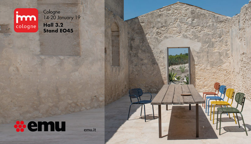 From the 14th to the 20th of January, EMU attends the IMM exhibition in Cologne, the first international meeting for exhibitors and buyers of the design furniture market. Within the brand stand (Hall 3.2 stand E045), you will find the outdoor novelties for 2019, a skilful combination of design, innovation, manifacturing skills and high quality standards. The cooperation with worldwide renowned designers is a plus of the company.