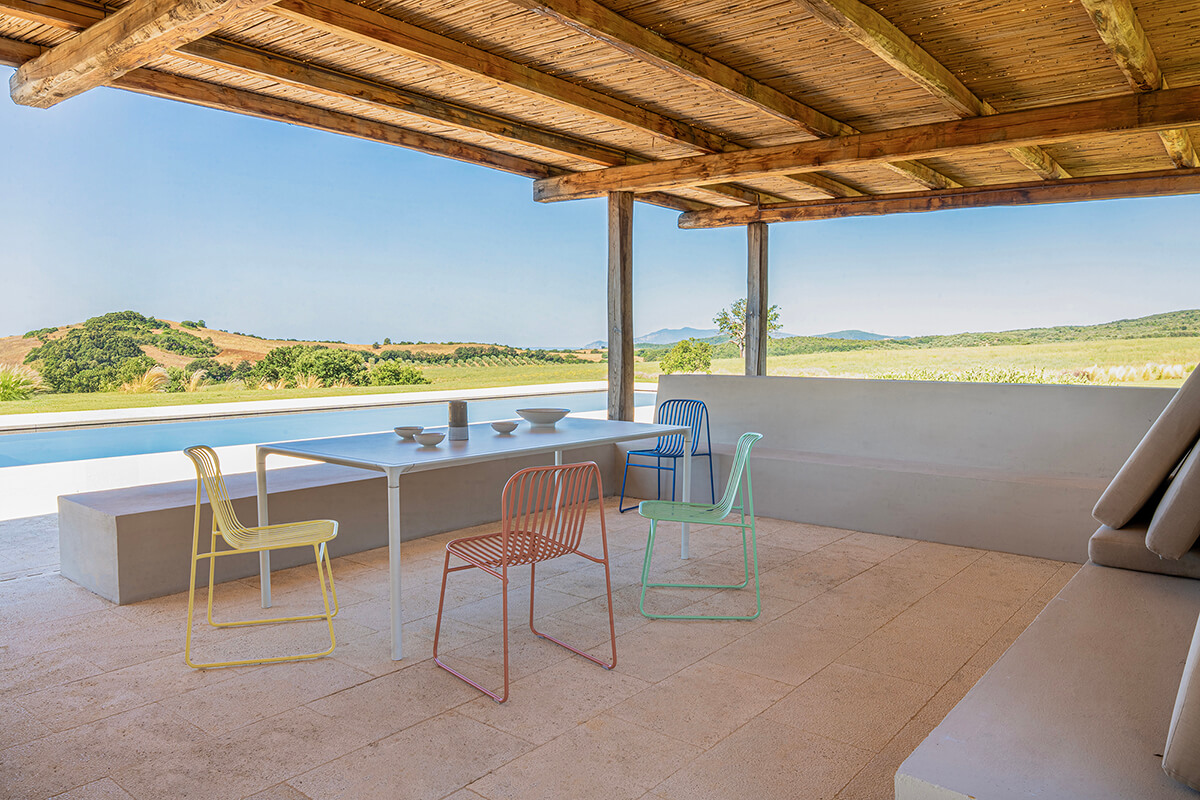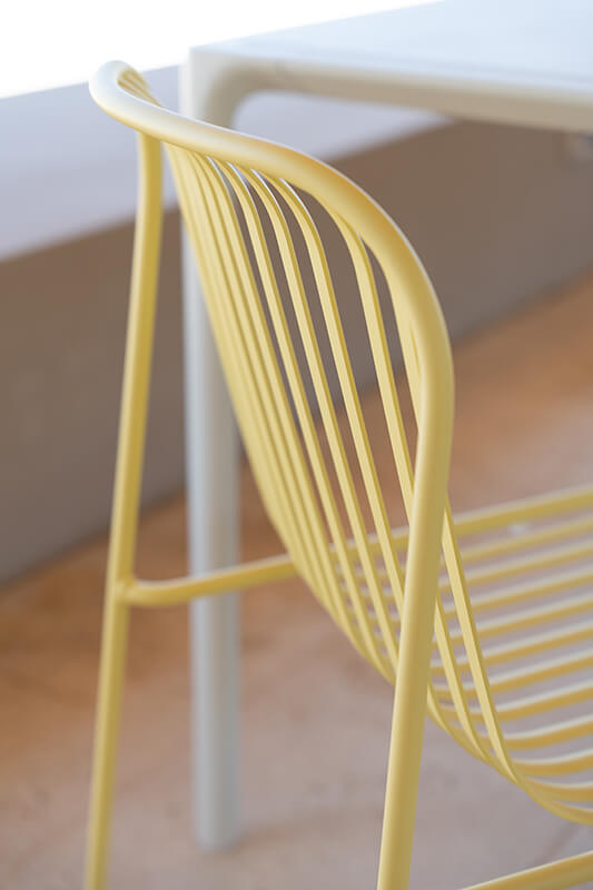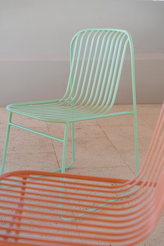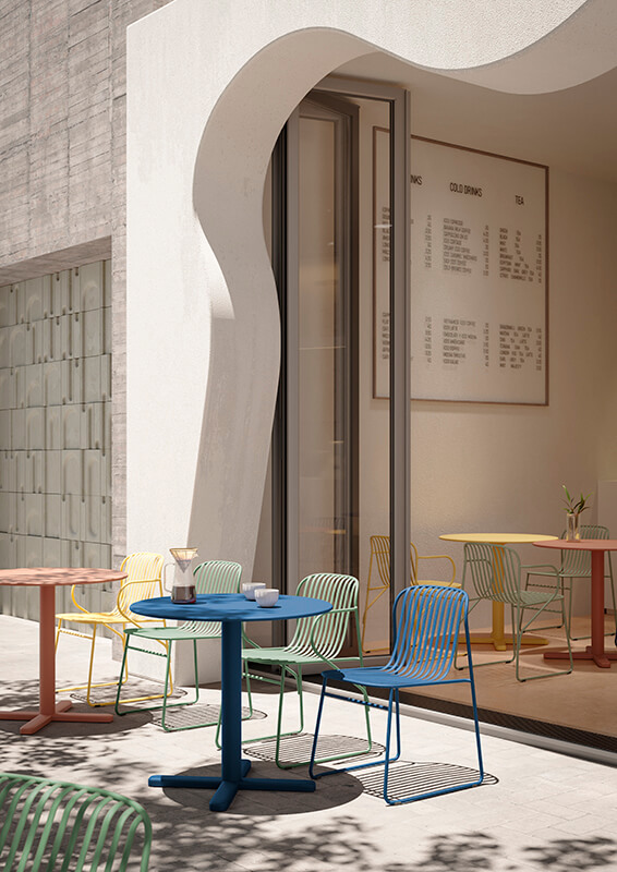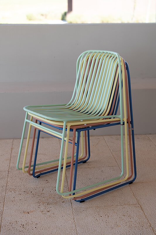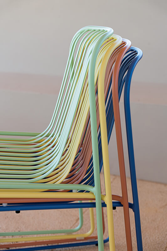 La collection de sièges en acier Riviera, dessinée par Lucidi/Pevere, comprend différents éléments: chaise, fauteuil, transat et tabouret; sa caractéristique principale: un signe graphique minimal et raffiné. La structure, entièrement soudée, est réalisée en tubulaire et barres à profil arrondi (en demi-amande) d’acier Fe360. Revêtement en Emu-Coat (cataphorèse + laquage).