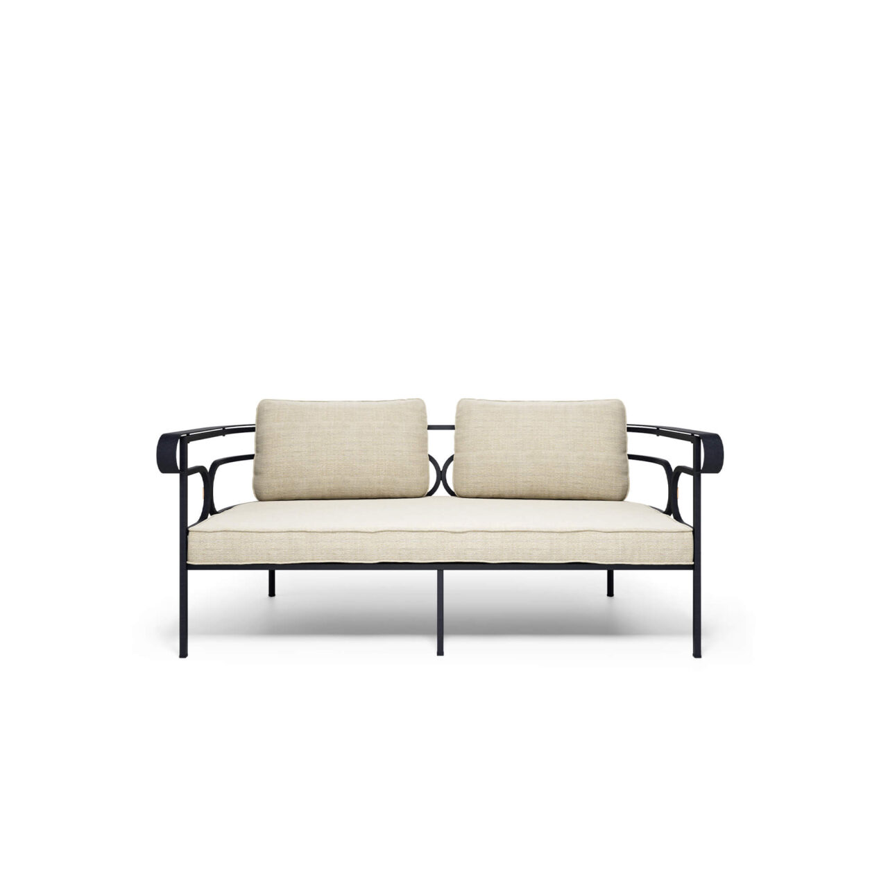 Il divano Collier da due posti, progettato da LCM Marin Design Studio, è una seduta dal design classico che si distingue per la sua eleganza senza tempo e le forme armoniose. I dettagli raffinati e i contrasti geometrici delicati richiamano suggestioni tradizionali, rendendolo una soluzione d’arredo raffinato ideale per ambienti residenziali e spazi alberghieri. La struttura, realizzata interamente in tubolare squadrato di acciaio, conferisce solidità e carattere al divano, mentre la seduta in lamiera di acciaio stirata, arricchita da un pattern decorativo iconico, definisce la sua identità estetica distintiva. Come accessorio, è disponibile un cuscino imbottito per seduta e schienale, rivestito in un’ampia gamma di tessuti adatti anche all’uso esterno, per garantire comfort e praticità in ogni ambiente. Un fregio decorativo color ottone valorizza il divano Collier, così come tutti gli elementi della collezione. La sua forma avvolgente e accogliente trasforma ogni curva in un gesto di morbido comfort e ogni linea in un equilibrio armonioso tra estetica e funzionalità, rendendolo perfetto per chi cerca arredo di lusso e qualità duratura.
