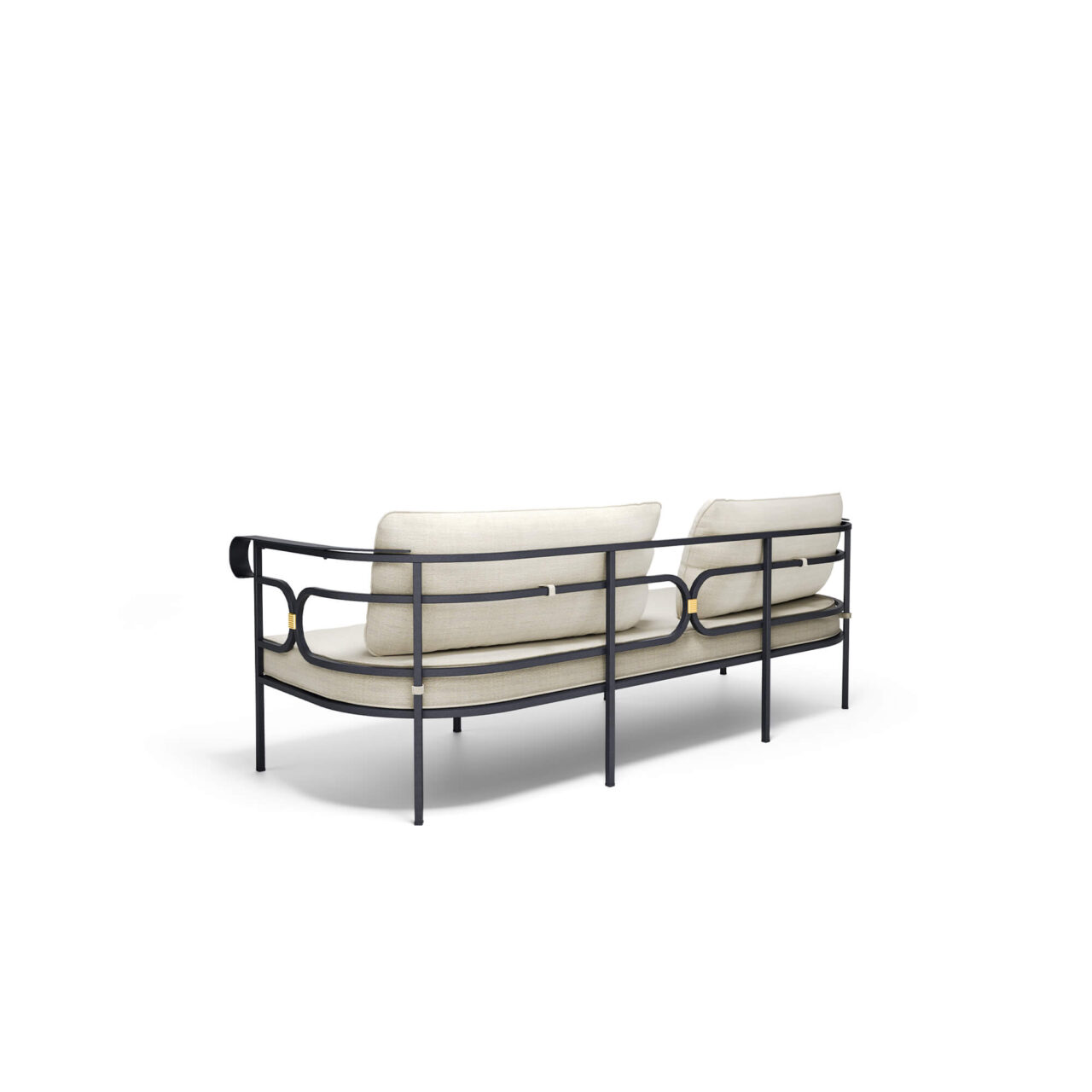 Il divano Collier da tre posti, progettato da LCM Marin Design Studio, è una seduta dal design classico che si distingue per la sua eleganza senza tempo e le forme armoniose. I dettagli raffinati e i contrasti geometrici delicati richiamano suggestioni tradizionali, rendendolo una soluzione d’arredo raffinato ideale per ambienti residenziali e spazi alberghieri. La struttura, realizzata interamente in tubolare squadrato di acciaio, conferisce solidità e carattere al divano, mentre la seduta in lamiera di acciaio stirata, arricchita da un pattern decorativo iconico, definisce la sua identità estetica distintiva. Come accessorio, è disponibile un cuscino imbottito per seduta e schienale, rivestito in un’ampia gamma di tessuti adatti anche all’uso esterno, per garantire comfort e praticità in ogni ambiente. Un fregio decorativo color ottone valorizza il divano Collier, così come tutti gli elementi della collezione. La sua forma avvolgente e accogliente trasforma ogni curva in un gesto di morbido comfort e ogni linea in un equilibrio armonioso tra estetica e funzionalità, rendendolo perfetto per chi cerca arredo di lusso e qualità duratura.